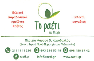 Στο κατάστημα μας «Κρητικά προϊόντα – Το ραέτι του Νικολή», στην Πλατεία Ψαρρού 5